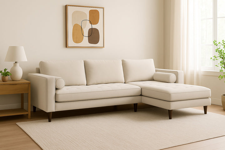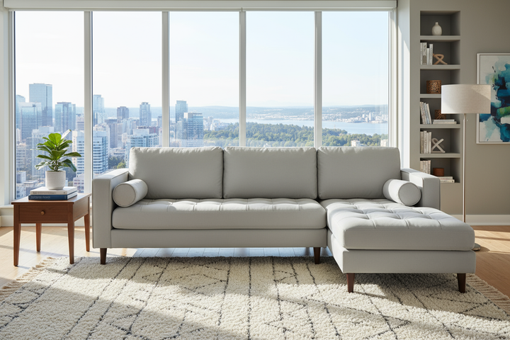 Looking for a durable and pet-friendly mid-century modern sectional? Look no further than our Salo Sectional with its scratch and stain-resistant microfiber, and top and bottom coverage for ultimate protection from pet hair, scratches, and spills. With its plush tufting and comfortable design, this sectional is the perfect choice for pet owners who want to enjoy both style and practicality.
