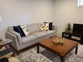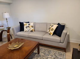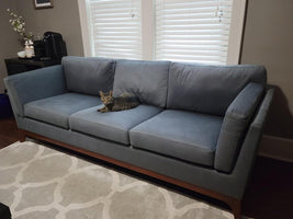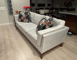 Kemi provides the perfect balance of style and function. Featuring a mid-century modern design with thick and supportive seat cushions, wood accents, and a durable and scratch-resistant fabric finish, this statement piece will look beautiful in any room. The elegant design is sure to be enjoyed for years to come.
