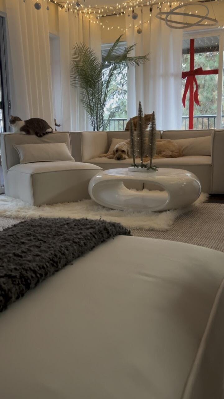 Okay, so it's been almost a month since we got this couch from Auberge Design, and let me just say—we are OBSESSED! 😍 Like, seriously, I was sooo worried about my three cats turning it into their personal scratching post, but this sofa has been an actual lifesaver.